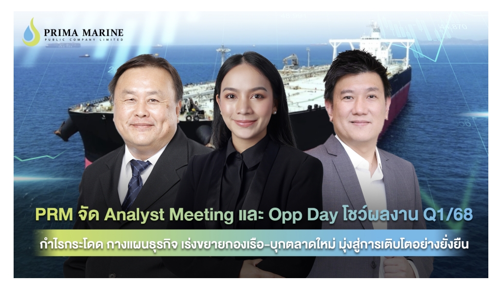 สำนักข่าวหุ้นอินไซด์(6 มิถุนายน 2568 )-----PRM วางรากฐานอนาคตแข็งแกร่ง! จัด Analyst Meeting และ Opp Day โชว์กำไรสุทธิไตรมาส 1/2568 ทะลุ 769 ล้านบาท พร้อมเดินหน้าขยายกองเรือ และเจาะตลาดใหม่ มุ่งสู่การเติบโตอย่างยั่งยืน