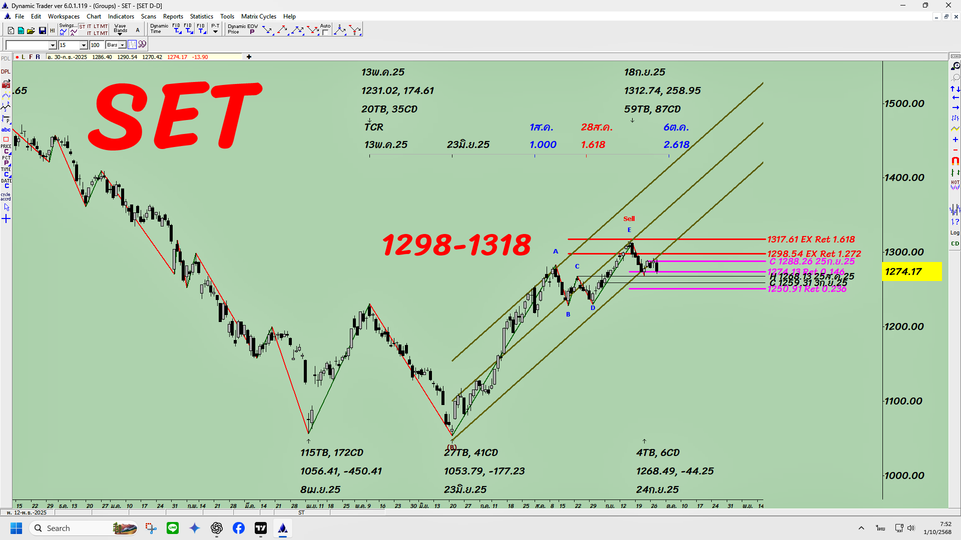 1. ตลาดหุ้นไทยฟื้นตัวจาก lo@23-06-68 พิกัด 1053.79 ขึ้นมาทำ hi@18-09-68 พิกัด 1312.74 ฟื้นตัวมาทั้งหมด +258.95 จุด นี่คือทางเดิน ในกรอบ Channel ตามภาพ