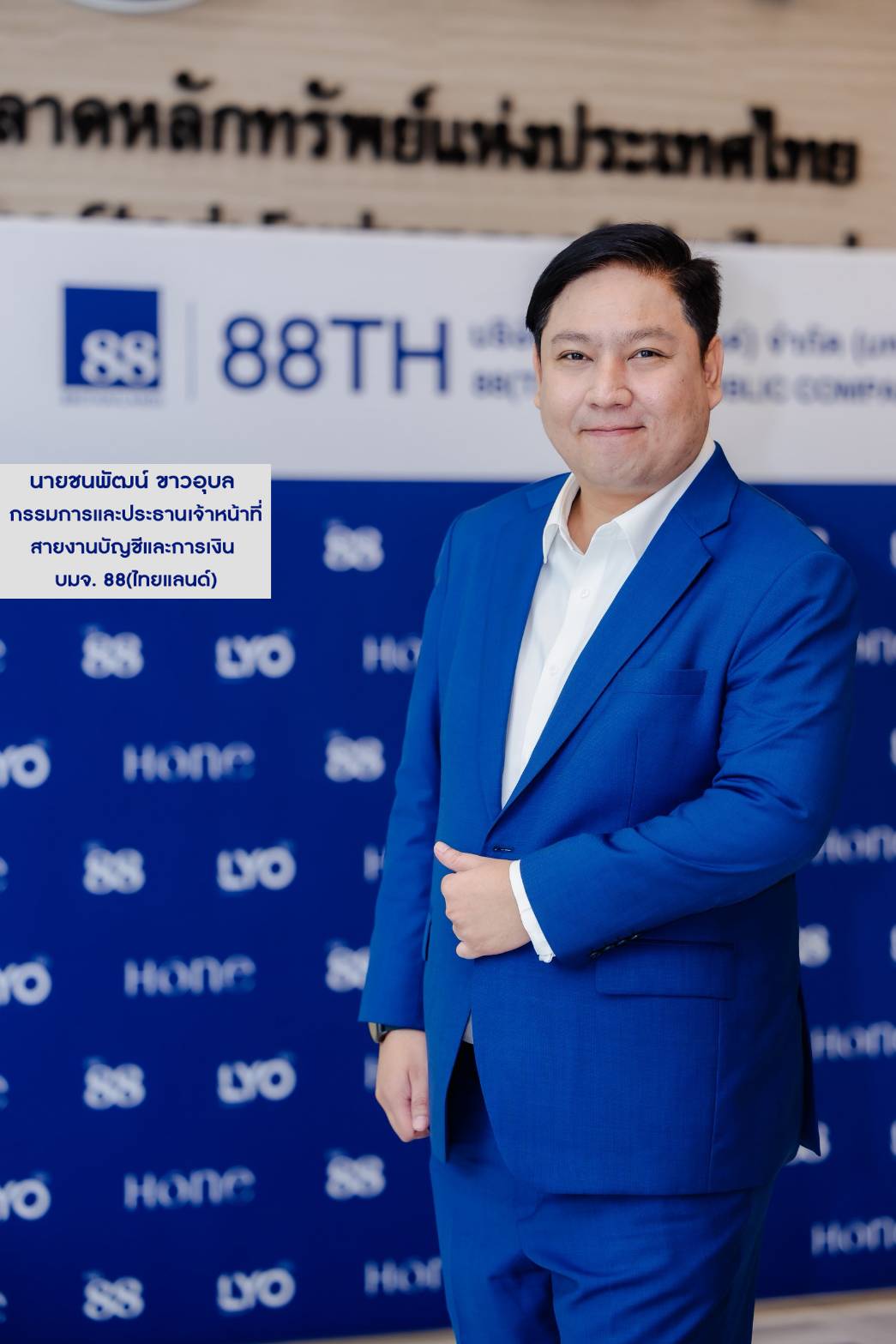 นายชนพัฒน์ ขาวอุบล กรรมการและประธานเจ้าหน้าที่สายงานบัญชีและการเงิน บมจ. 88(ไทยแลนด์) หรือ “88TH” เปิดเผยว่า ผลประกอบการในปี 2565-2567 รายได้จากการขายและบริการรวมและกำไรสุทธิเติบโตต่อเนื่องแบบมีนัยสำคัญ โดยมีรายได้รวม เท่ากับ  268.77 ล้านบาท 364.05 ล้านบาท และ 477.82 ล้านบาท ตามลำดับ ขณะที่กำไรสุทธิอยู่ที่ 13.20 ล้านบาท 25.91 ล้านบาท และ 55.57 ล้านบาท ตามลำดับ