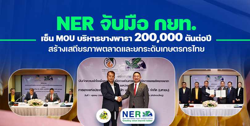 สำนักข่าวหุ้นอินไซด์(2 ตุลาคม 2568)---------บริษัท นอร์ทอีส รับเบอร์ จำกัด (มหาชน) หรือ NER ร่วมกับ การยางแห่งประเทศไทย (กยท.) ลงนามบันทึกความเข้าใจ (MOU) ข้อตกลงร่วมมือด้านการบริหารจัดการผลผลิตยางพารา เพื่อสร้างความสมดุลในการจัดการผลผลิตยางพารา ให้สอดคล้องกับความต้องการของตลาดทั้งในและต่างประเทศ ต่อยอดสู่การสร้างเสถียรภาพราคายางและรองรับผลผลิตอย่างเหมาะสม เพิ่มโอกาสทางเศรษฐกิจและรายได้ที่มั่นคงให้แก่เกษตรกรชาวสวนยาง โดยมีเป้าหมายรวบรวมผลผลิตยางพาราจำนวน 200,000 ตันต่อปี สัญญามีผลบังคับใช้ 5 ปี และพิจารณาระยะเวลาต่อได้นายชูวิทย์ จึงธนสมบูรณ์ ประธานเจ้าหน้าที่บริหาร บริษัท นอร์ทอีส รับเบอร์ จำกัด (มหาชน) หรือ NER ผู้ดำเนินธุรกิจผลิตและจำหน่าย ยางแผ่นรมควัน ยางแท่ง ยางผสม และสินค้าปลายน้ำแผ่นยางพาราปูพื้นคุณภาพสูง เพื่อจำหน่ายไปยังผู้ผลิตในอุตสาหกรรมยานยนต์ กลุ่มผู้ค้าคนกลาง ทั้งในประเทศและต่างประเทศเปิดเผยว่า บริษัทฯ ได้ร่วมลงนามบันทึกความเข้าใจ (MOU) กับการยางแห่งประเทศไทย (กยท.) เพื่อความร่วมมือด้านการบริหารจัดการผลผลิตยางพารา โดยมี นายเพิก เลิศวังพง รักษาการแทนผู้ว่าการการยางแห่งประเทศไทย ร่วมลงนาม เพื่อร่วมกันสร้างโอกาสทางเศรษฐกิจและรายได้ที่มั่นคงให้เกษตรกรไทยในระยะยาว พร้อมสนับสนุนการพัฒนาอุตสาหกรรมยางพาราอย่างยั่งยืน ณ การยางแห่งประเทศไทย (สำนักงานใหญ่) กรุงเทพมหานคร