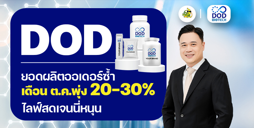 HotNews: DOD ยอดผลิตออเดอร์ซ้ำ เดือน ต.ค.พุ่ง 20-30% ไลฟ์สดเจนนี่หนุน
