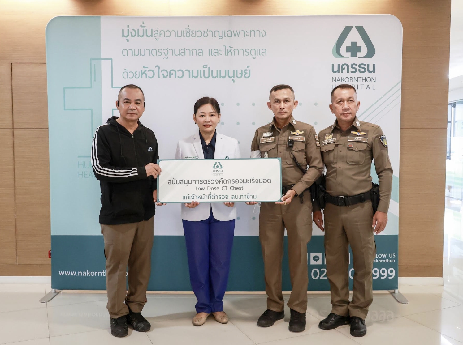 สำนักข่าวหุ้นอินไซด์(16 ตุลาคม 2568)---- บมจ.โรงพยาบาลนครธน (NKT) แสดงความห่วงใยต่อสุขภาพของเจ้าหน้าที่ตำรวจจราจร สถานีตำรวจนครบาลท่าข้าม โดย แพทย์หญิงศิเรมอร ทองสิมา (ที่ 2 จากซ้าย) ผู้อำนวยการสายงานแพทย์ โรงพยาบาลนครธน เป็นผู้แทนมอบโปรแกรมตรวจสุขภาพปอดให้แก่ตำรวจจราจร จำนวน 25 นาย โดยมี พันตำรวจโทอิทธิพันธ์ หาญเวช สารวัตรจราจร สน.ท่าข้าม (ที่ 1 จากซ้าย) ให้เกียรติรับมอบ กิจกรรมดังกล่าวจัดขึ้นเพื่อส่งเสริมสุขภาพและป้องกันโรคระบบทางเดินหายใจในกลุ่มเจ้าหน้าที่ซึ่งต้องปฏิบัติงานกลางสภาพแวดล้อมที่มีมลพิษจากควันรถยนต์ โดยโปรแกรมตรวจสุขภาพปอดประกอบด้วย การตรวจสมรรถภาพปอด การเอกซเรย์ปอด (Chest X-ray) และการตรวจคัดกรองมะเร็งปอดด้วยเอกซเรย์คอมพิวเตอร์แบบรังสีต่ำ (Low Dose CT Chest) โรงพยาบาลนครธนมุ่งมั่นสนับสนุนการดูแลสุขภาพของบุคลากรผู้เสียสละเพื่อสังคม และหวังให้ตำรวจจราจรทุกท่านมีสุขภาพร่างกายแข็งแรง พร้อมให้บริการประชาชนอย่างปลอดภัยและยั่งยืนต่อไป