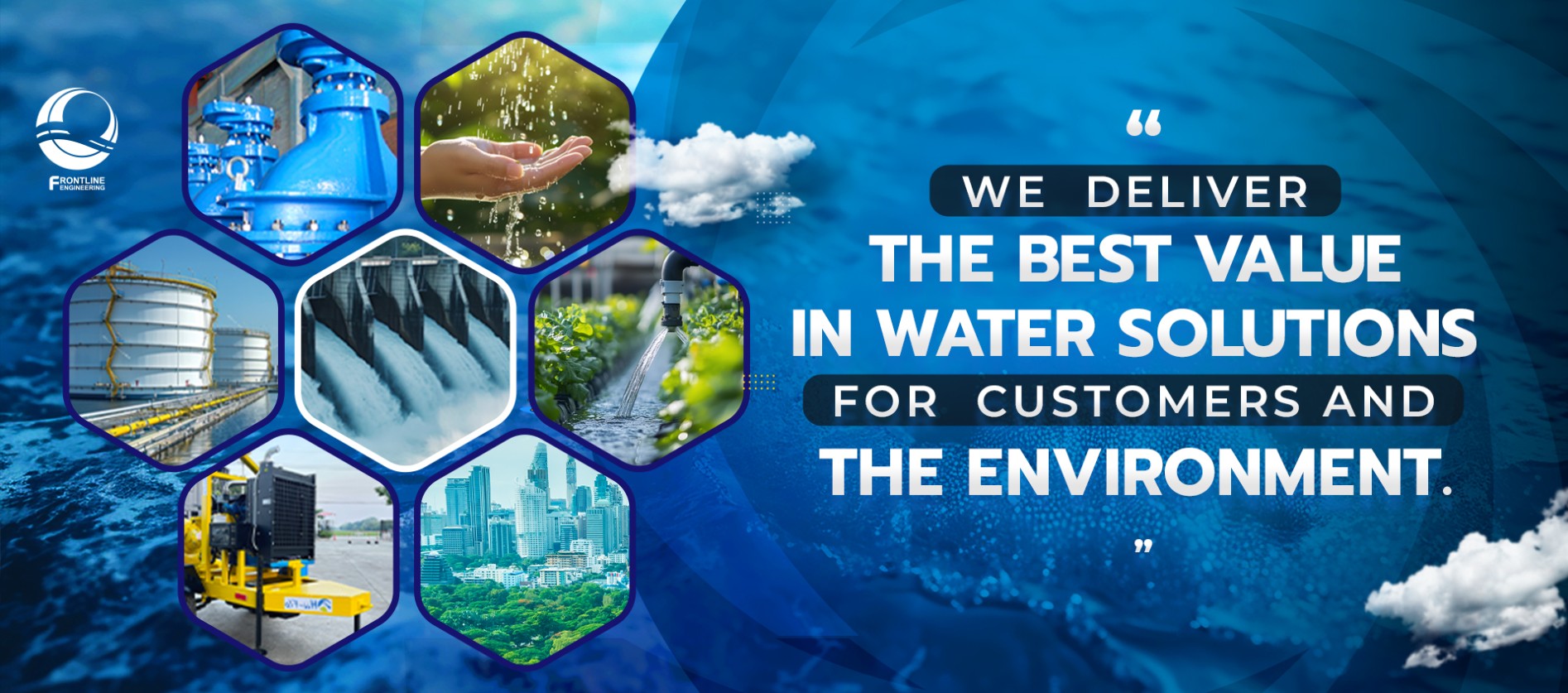 ฟร้อนท์ไลน์ เอ็นจิเนียริ่ง โดดเด่นด้วยความรู้และประสบการณ์ในงานระบบน้ำหลากหลายประเภท ไม่ว่าจะเป็นระบบการจัดการน้ำ ระบบชลประทาน การประปา ระบบจัดการน้ำเสีย ระบบระบายน้ำในเขตเมือง งานอุตสาหกรรม พลังงาน และระบบสาธารณูปโภคขนาดใหญ่ เป็นต้น