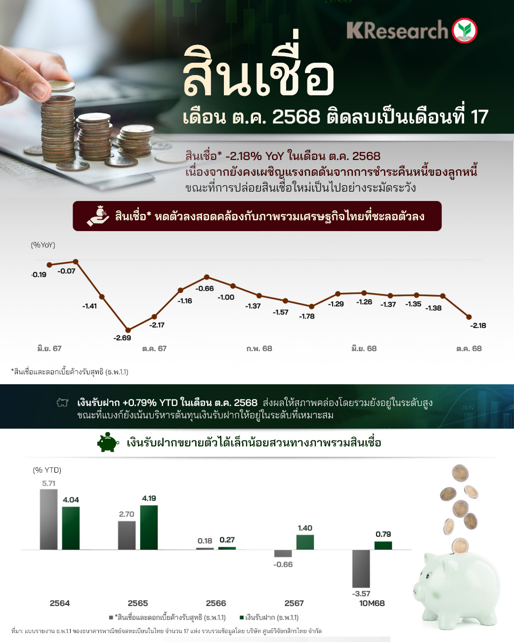 ศูนย์วิจัยกสิกรไทย สรุปข้อมูลสินเชื่อและเงินฝากของธนาคารพาณิชย์ไทย 17 แห่ง ณ สิ้นเดือน ต.ค. 2568