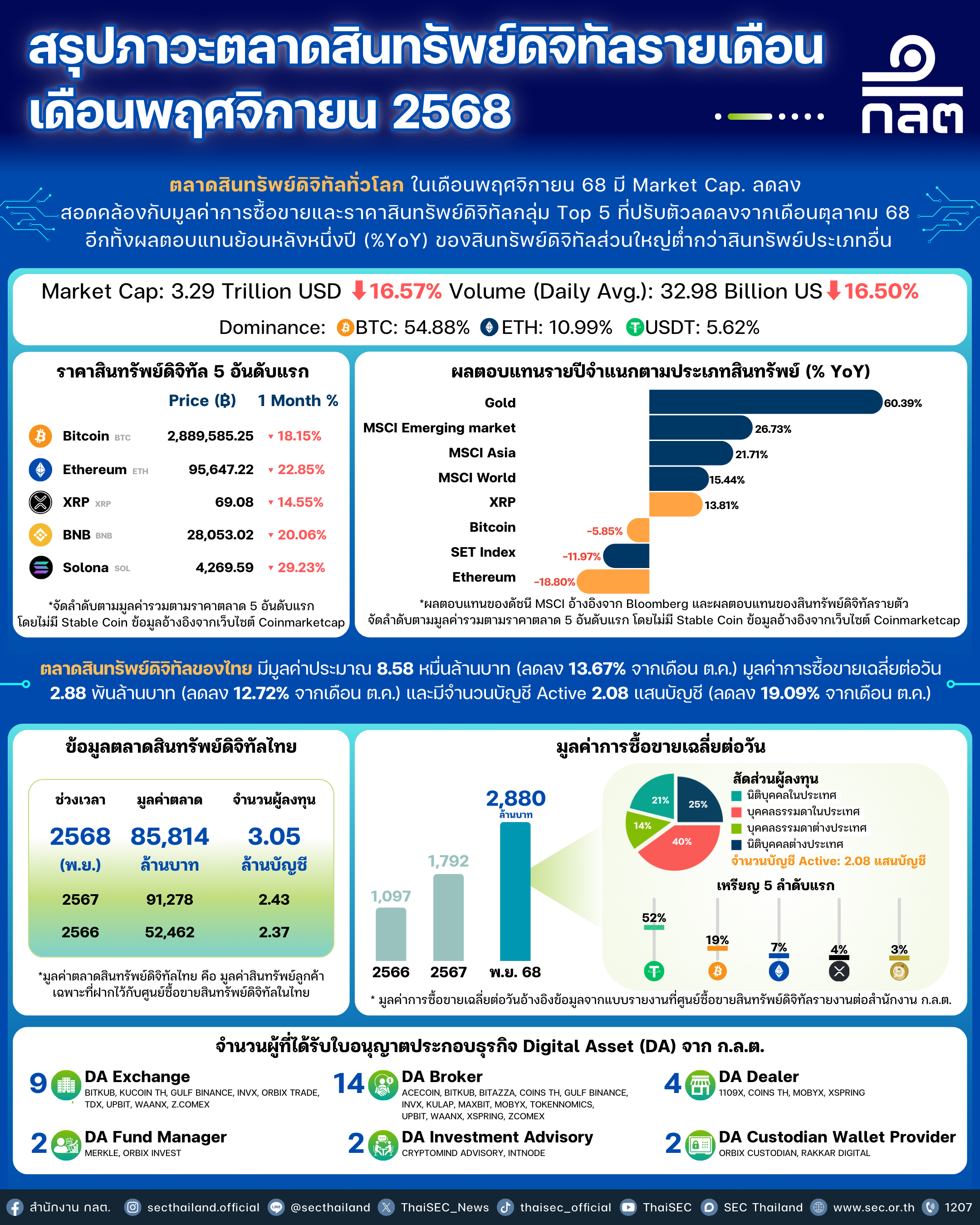 ก.ล.ต.  รายงานสรุปข้อมูลสำคัญเกี่ยวกับตลาดสินทรัพย์ดิจิทัล เดือนพฤศจิกายน 2568