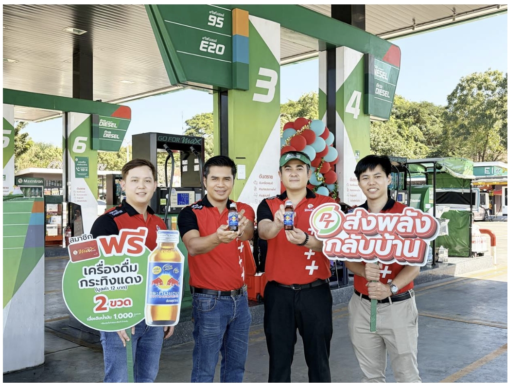 พีที ส่งพลังกลับบ้าน เติมน้ำมัน รับฟรี เครื่องดื่มกระทิงแดง