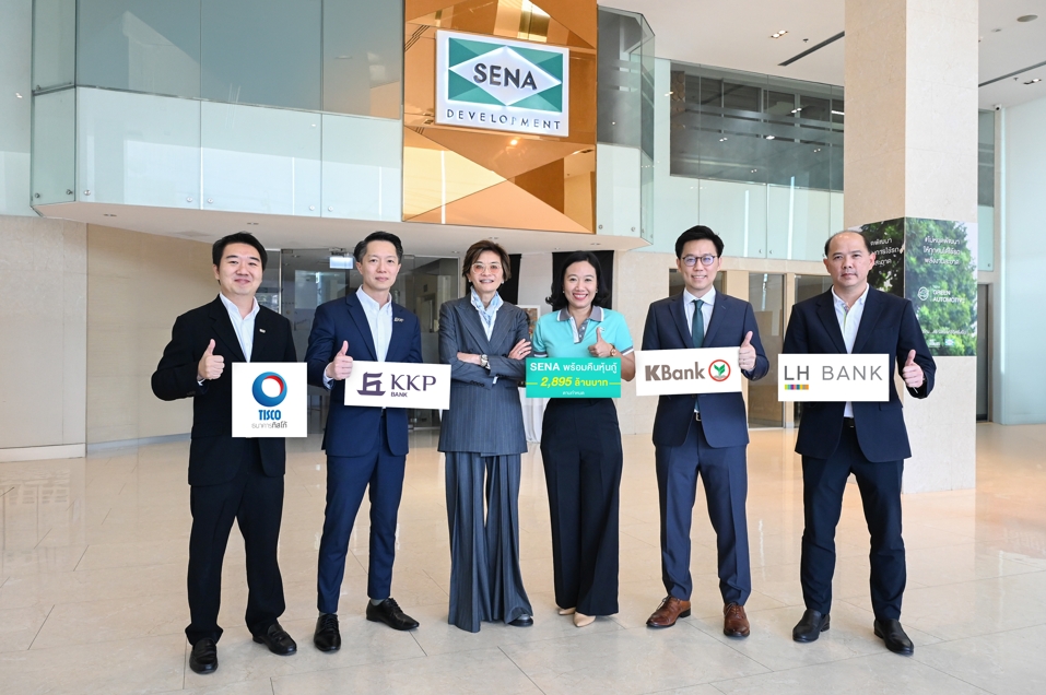 คุณนพพันธ์ ตั้งกัลยานนท์ หัวหน้าฝ่ายพัฒนาความสัมพันธ์ลูกค้า 2 สายธุรกิจขนาดใหญ่ กลุ่มลูกค้าบรรษัท ธนาคารทิสโก้ จำกัด (มหาชน), คุณวิศรุต ปัญญาภิญโญผล Real Estate Lending Head ธนาคารเกียรตินาคินภัทร จำกัด (มหาชน), ผศ.ดร.เกษรา ธัญลักษณ์ภาคย์ กรรมการผู้จัดการ , คุณอธิกา บุญรอดชู ผู้ช่วยกรรมการผู้จัดการ บริษัท เสนาดีเวลลอปเม้นท์ จำกัด (มหาชน), คุณจาตุรเชษฐ นิลธวัช ผู้บริหารธุรกิจสหบรรษัท ธนาคารกสิกรไทย จำกัด (มหาชน) และคุณปิยะ พัฒน์วิริยะรัตน์ รองประธานเจ้าหน้าที่บริหารกลุ่มลูกค้าธุรกิจ ธนาคารแลนด์ แอนด์ เฮ้าส์ จำกัด (มหาชน) (จากภาพเรียงจากซ้ายไปขวา) ร่วมแสดงความพร้อมในการสนับสนุนทางการเงิน วงเงินรวม 3,200 ล้านบาท เพื่อรองรับการชำระคืนหุ้นกู้ที่ครบกำหนดไถ่ถอนในช่วงปลายเดือนมกราคมและต้นเดือนกุมภาพันธ์ ปี พ.ศ. 2569 สะท้อนความเชื่อมั่นต่อศักยภาพ ฐานะการเงิน และวินัยทางการเงินของ SENA ในระยะยาว