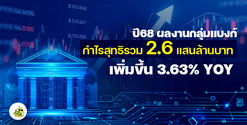 สำนักข่าวหุ้นอินไซด์( 22 มกราคม 2569 )------ สรุปปี2568 ผลงานหุ้นกลุ่มแบงก์ คว้ากำไรสุทธิรวม 265,390 แสนล้านบาท เพิ่มขึ้น 3.63% จากปี 2567 โดยแบงก์ใหญ่ SCB กำไรสุทธิ 47,488 ล้านบาท เพิ่มขึ้น 8.1% จากปีก่อน ด้าน KBANK กำไรสุทธิ 49,565 ล้านบาท ลดลง 0.07% ขณะที่ BBL กำไรสุทธิ 46,007 ล้านบาท เพิ่มขึ้น 1.8% จากปีก่อน ส่วน KTB กำไรสุทธิ 48,228 ล้านบาท เพิ่มขึ้น 4.49% และ BAY กำไรสุทธิ 31,738 ล้านบาทเพิ่มขึ้น 6.86%