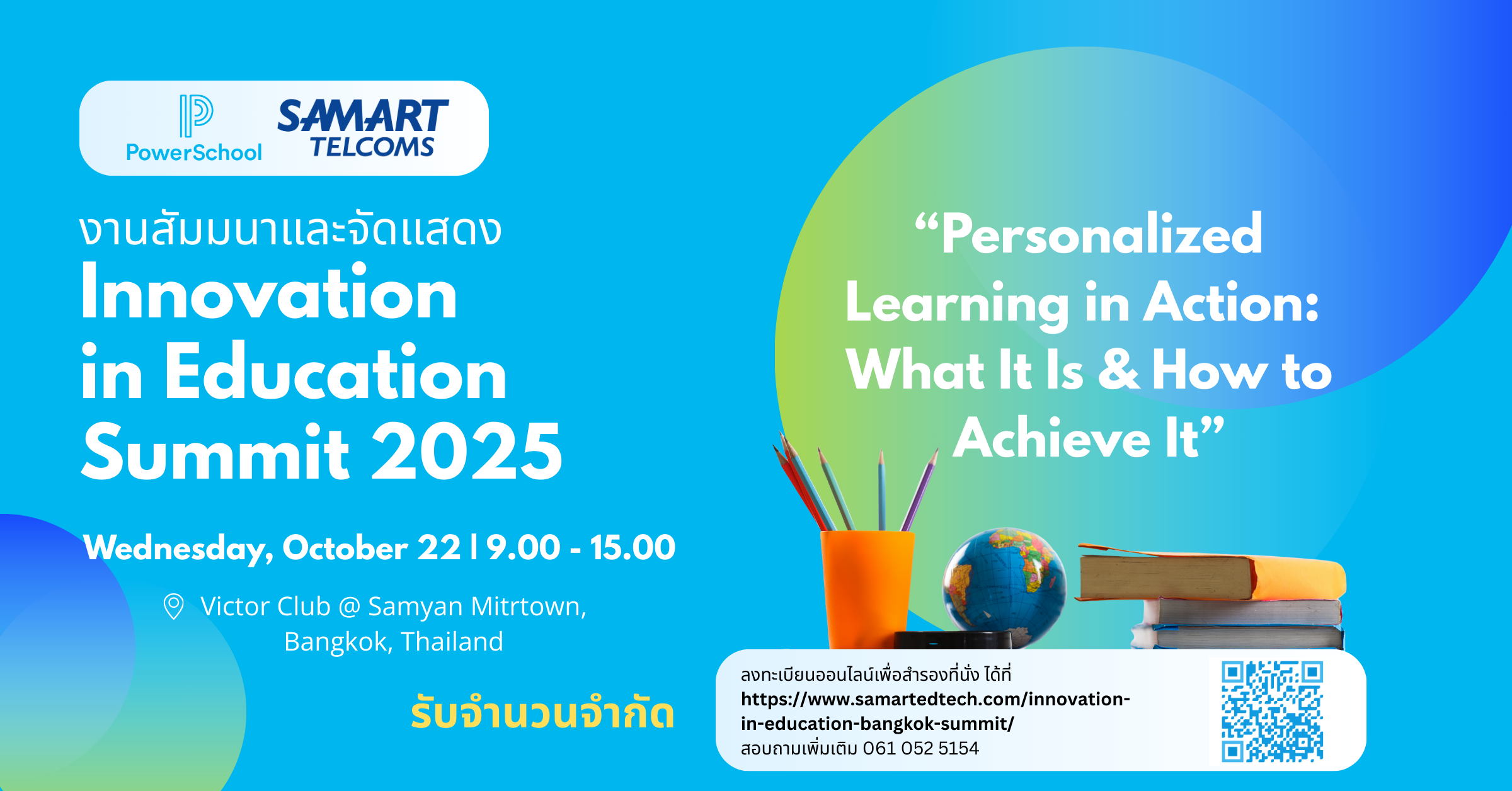 สำนักข่าวหุ้นอินไซด์(1 ตุลาคม 2568)----บริษัท สามารถเทลคอม จำกัด (มหาชน) ผู้นำด้านเทคโนโลยีสื่อสาร สารสนเทศ และดิจิทัลโซลูชันครบวงจร ร่วมกับ PowerSchool ผู้นำด้านเทคโนโลยีการศึกษาระดับโลกจากสหรัฐอเมริกา จัดงานสัมมนาวิชาการ และแสดงนวัตกรรมการศึกษา “PowerSchool Innovation in Education Summit 2025” ภายใต้แนวคิด “Personalized Learning in Action: What It Is & How to Achieve It” ในวันอังคารที่ 22 ตุลาคม 2568 เวลา 09.00 – 15.00 น. ณ ห้องประชุม 3-4 Victor Club ชั้น 7 อาคารสามย่านมิตรทาวน์ กรุงเทพฯ