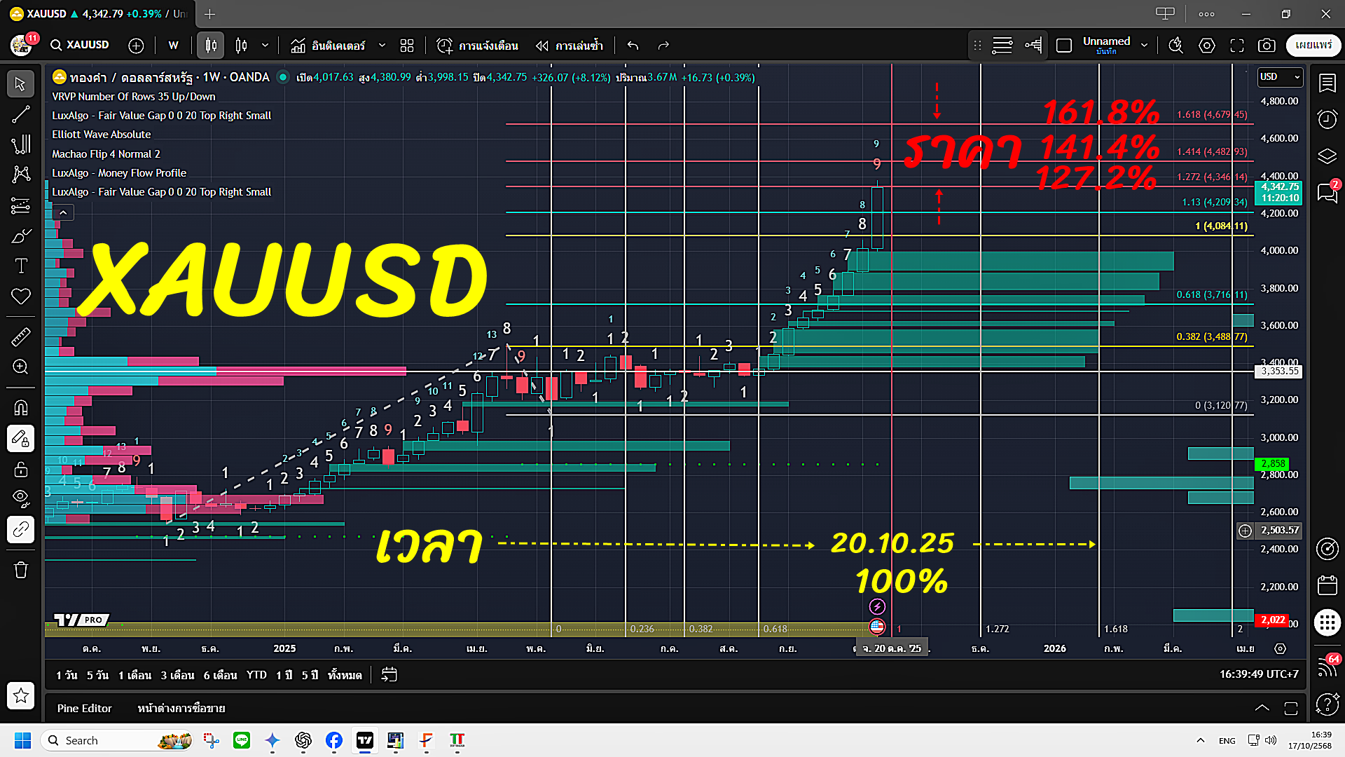 • ราคาทองอยู่ที่ 4,340 USD/oz (ตรงกับ Fib 127.2%)