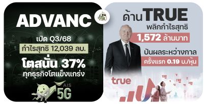 ADVANC เผยงบรวมQ3/68 กำไรสุทธิ 12,038 ล้านบาท เทียบกับช่วงเดียวกันปีก่อนมีกำไรสุทธิ 8,788 ล้านบาท