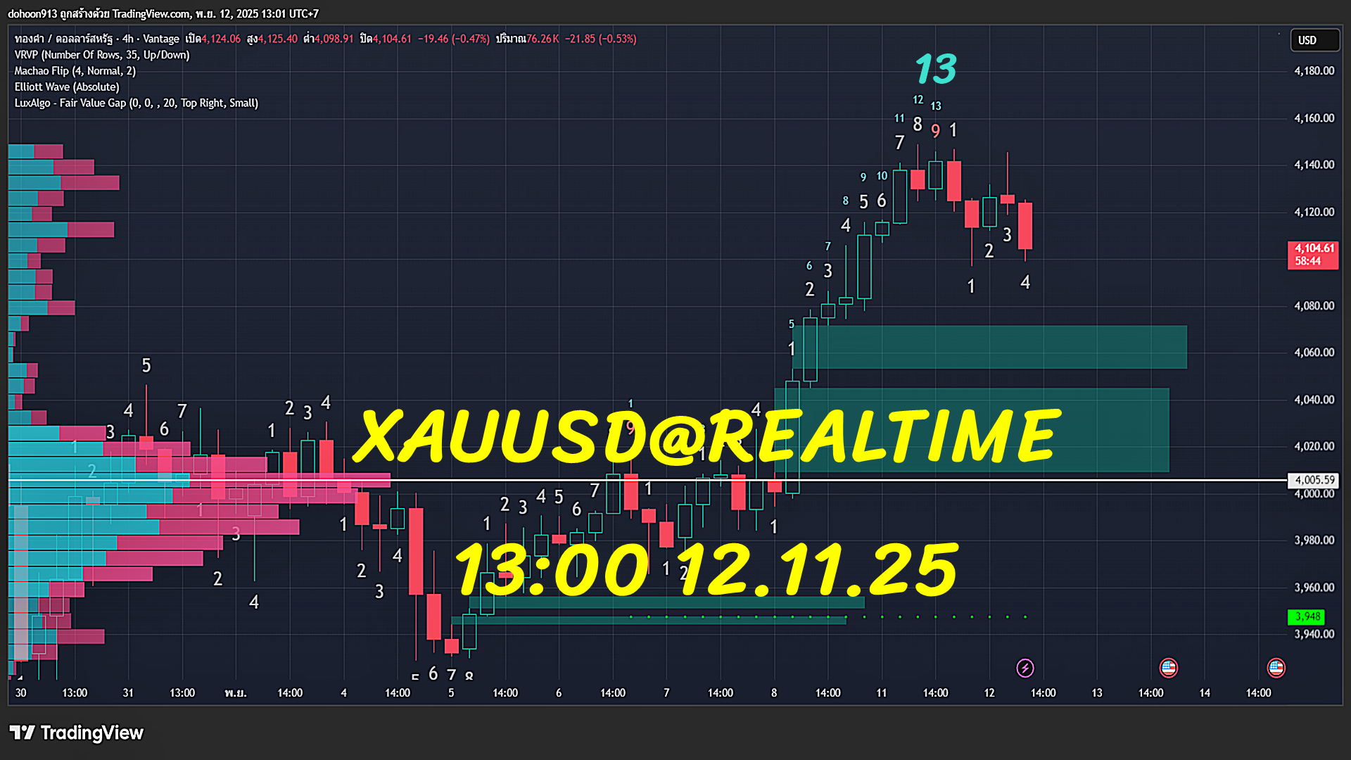 • Base case: เล่นฝั่งขาย ใต้ Pivot/VWAP ด้วยโครงสร้าง H1 ยังลง เป้า 4099→4072