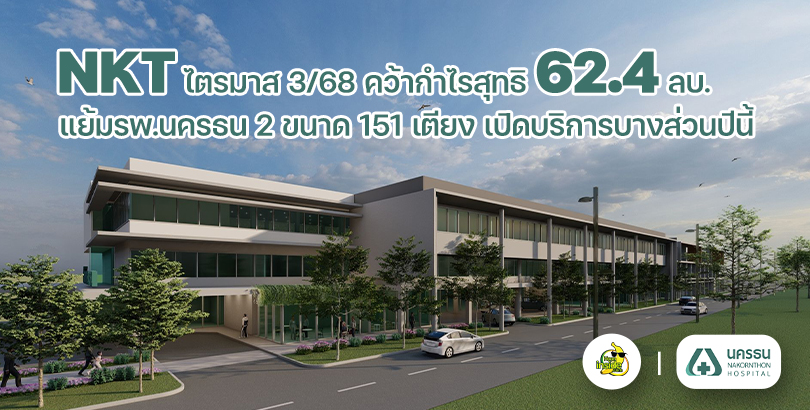 สำนักข่าวหุ้นอินไซด์( 12 พฤศจิกายน 2568 )-------NKT ไตรมาส 3/68 กำไรสุทธิ จำนวน 62.4 ล้านบาท และ 9 เดือนโกย 214.8 ล้านบาท พร้อมเปิดความคืบหน้าของการดำเนินโครงการ โรงพยาบาลนครธน 2 ขนาด 151 เตียง คาดเปิดให้บริการบางส่วนปีนี้ และทยอยเพิ่มเตียงจนเต็มกำลังในปี 69-70 บริษัท โรงพยาบาลนครธน จำกัด (มหาชน) NKT เปิดเผยว่า ในช่วงไตรมาส 3 ปี 2568 บริษัทยังคงรักษาความแข็งแกร่งของธุรกิจหลักด้านบริการสุขภาพ ซึ่งมีเสถียรภาพ ท่ามกลางภาวะเศรษฐกิจที่ชะลอตัว พร้อมทั้งอยู่ในระยะลงทุนขยายกิจการ โดยมีการก่อสร้างโรงพยาบาลนครธน 2 ขนาด 151 เตียง เพื่อรองรับผู้ป่วยประกันสังคมและผู้ป่วยทั่วไปในเขตกรุงเทพฯ เขต 7 โดยคาดว่าจะเปิดให้บริการบางส่วนในปีนี้ และทยอยเพิ่มเตียงจนเต็มกำลังในปี 2569-2570 ควบคู่กับการปรับปรุงโรงพยาบาลเดิมซึ่งเป็นโครงการขยายเตียง เพิ่มเติม โดยการเพิ่มห้อง VIP และขยายศักยภาพการให้บริการในกลุ่มพรีเมียม อีกทั้งยังมีการก่อสร้างโครงการนครธน ลองไลฟ์ เซ็นเตอร์ ซึ่งจะเป็นศูนย์ดูแลผู้สูงอายุและผู้มีภาวะพึ่งพิงแบบองค์รวม ขนาด 85 เตียง โดยคาดว่าจะเปิดให้บริการ ในปี 2569แม้เผชิญความไม่แน่นอนทางเศรษฐกิจ บริษัทยังคงบริหารงานอย่างรอบคอบและมีประสิทธิภาพ สะท้อนผ่าน อัตราส่วน P/E และ P/BV ที่ต่ำกว่าค่าเฉลี่ยของกลุ่มธุรกิจสุขภาพ (9.47 เท่า และ 1.12 เท่า เทียบกับค่าเฉลี่ย 20.42 เท่า และ 2.55 เท่าตามลำดับ3) ขณะที่บริษัทยังคงมีแนวทางจ่ายเงินปันผลอย่างสม่ำเสมอ สอดคล้องกับผลการดำเนินงาน ด้วยมาตรฐานธรรมาภิบาลที่แข็งแกร่งและโปร่งใส บริษัทเชื่อมั่นว่าสามารถต่อยอดโอกาสการเติบโตในระยะยาวได้อย่าง ยั่งยืนเมื่อภาวะเศรษฐกิจและตลาดกลับเข้าสู่ภาวะปกติ ในไตรมาส 3 ปี 2568 บริษัทมีกำไรจากการดำเนินงานก่อนหักดอกเบี้ย และภาษี (EBIT) จำนวน 83.4 ล้านบาท คิด เป็นอัตราส่วนต่อรายได้ที่ร้อยละ 16 ลดลงร้อยละ 26 จากช่วงเดียวกันของปีก่อนสืบเนื่องมาจากการลดลงของผลการ ดำเนินงานจากการเข้าสู่ฤดูฝนที่ล่าช้าในปีนี้ ขณะที่กำไรสุทธิ จำนวน 62.4 ล้านบาท คิดเป็นอัตราส่วนต่อรายได้ที่ร้อยละ 12 ลดลงร้อยละ 28 จากช่วงเดียวกันของปีก่อน ในไตรมาส 3 ปี 2568 บริษัทมีรายได้รวมจำนวน 525.5 ล้านบาท ลดลงร้อยละ 4 จากช่วงเดียวกันของปีก่อน แบ่งเป็น รายได้จากการประกอบกิจการโรงพยาบาลจำนวน 517.6 ล้านบาท ลดลงร้อยละ 4 จากช่วงเดียวกัน ของปีก่อนสาเหตุหลักมาจากการลดลงของโรคระบาดในเด็ก เนื่องจากการเข้าสู่ฤดูฝนที่ล่าช้ากว่าปกติในปีนี้ รายได้จากผู้ป่วยนอกจำนวน 327.9 ล้านบาท เพิ่มขึ้นร้อยละ 1 จากช่วงเดียวกันของปีก่อน รายได้จากผู้ป่วยในจำนวน 189.7 ล้านบาท ลดลงร