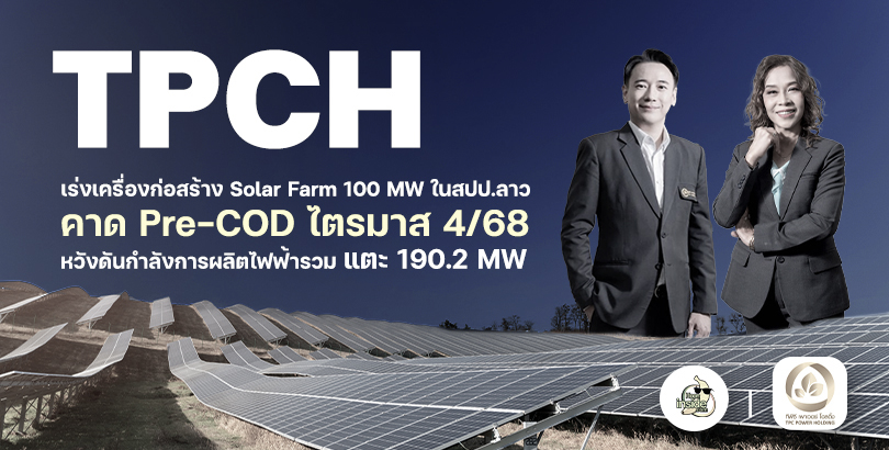 HotNews: TPCH เร่งเครื่องก่อสร้าง Solar Farm 100 MW ในสปป.ลาว คาด Pre-COD ไตรมาส 4/68 หวังดันกำลังการผลิตไฟฟ้ารวม แตะ 190.2MW