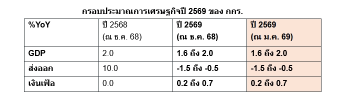 เศรษฐกิจไทยปี 2569 มีแนวโน้มโตต่ำกว่า 2% เป็นครั้งแรกในรอบ 30 ปี หากไม่รวมช่วงวิกฤติ ท่ามกลางความท้าทายรอบด้าน และคาดว่าไทยจะโตต่ำสุดในภูมิภาค จากทั้งความเปราะบางเชิงโครงสร้างที่มีอยู่เดิมด้วยขนาดเศรษฐกิจนอกระบบที่ใหญ่และหนี้ครัวเรือนสูง ขาดความสามารถทางการแข่งขันในโลกใหม่ ข้อจำกัดทางงบประมาณทางการคลัง และความท้าทายของภาครัฐที่มีกฎระเบียบจำนวนมากและข้อมูลขาดความเชื่อมโยง กอปรกับผลกระทบจากภัยพิบัติในปีก่อนหน้า ค่าเงินบาทแข็งค่า อาชญากรรมทางไซเบอร์ การเคลื่อนย้ายเงินทุนเทา และความเสี่ยงจากกระบวนการจัดทำงบประมาณที่ล่าช้ากกร. มีความกังวลต่อค่าเงินบาทที่แข็งค่า 8.2% ในปีที่ผ่านมา เป็นอันดับที่สองของภูมิภาค ซึ่งเป็นปัจจัยกดดันการส่งออกเสมือนการที่ภาคธุรกิจโดนเรียกเก็บภาษี (tariff) เพิ่มเติม เป็นการเซาะกร่อนภาคธุรกิจโดยเฉพาะผู้ส่งออก จึงอยากให้หน่วยงานการกำกับดูแลที่เกี่ยวข้องดูแลการเคลื่อนไหวของค่าเงินที่มีการแข็งค่าตามราคาทองคำ และบทบาทของการซื้อขายสินทรัพย์ดิจิทัลในประเทศไทยต่อค่าเงินบาท โดย กกร. สนับสนุนให้ภาครัฐเร่งดำเนินการ connect the dots เพิ่มการรับรู้แหล่งที่มาของเงิน ข้อมูลเชิงลึกของเงินบาทของบุคคลที่ไม่ได้มีถิ่นพำนักในประเทศไทย โดยไม่ยึดติดกับกรอบการกำกับเดิมๆ และป้องกันไม่ให้ธุรกรรมดังกล่าวบั่นทอนความสามารถในการแข่งขันและภาคเศรษฐกิจจริงของประเทศความไม่แน่นอนของเศรษฐกิจโลกในปี 2569 เพิ่มขึ้นจากปัจจัยภูมิรัฐศาสตร์ สะท้อนผ่านเหตุการณ์สหรัฐฯเข้าแทรกแซงเวเนซูเอลา เป็นการแบ่งขั้วทางเศรษฐกิจการเมืองโลกชัดเจนขึ้น (New World Order) ซึ่งกระทบกับระบบเศรษฐกิจโลกที่คาดว่าจะขยายตัวชะลอลงจากปีก่อน อีกทั้งผลจากมาตรการภาษีของสหรัฐฯ จะเริ่มเห็นผลมากขึ้นต่อเนื่องจากปีก่อนที่สินค้าส่งออกไทย ที่ไม่รวมสินค้าอิเล็กทรอนิกส์เริ่มหดตัว สะท้อนความไม่แน่นอนต่อเศรษฐกิจไทยที่สูงขึ้น ดังนั้นไทยต้องเท่าทันการเปลี่ยนแปลงกกร. มุ่งหวังให้รัฐบาลหลังการเลือกตั้งสานต่อแนวทางในการปรับโครงสร้างเศรษฐกิจไทย ผ่านการผันเศรษฐกิจเข้าสู่ในระบบและแก้ไขปัญหาหนี้อย่างยั่งยืนซึ่งจะช่วยเพิ่มกำลังซื้อ พร้อมทั้งเพิ่มศักยภาพผู้ประกอบการ ลดอุปสรรคทางธุรกิจที่จะหนุนการลงทุนใหม่และสร้างความเข้มแข็งของห่วงโซ่อุปทาน รวมทั้งยกระดับการต่อต้านคอรัปชั่น สิ่งผิดกฎหมาย เพื่อสร้าง Trust & Confidence และลดต้นทุนแฝงในการประกอบธุรกิจ ตลอดจนอาศัยการร่วมมือกันตามแนวทาง "Reinvent Thailand" เพื่อปิดจุดอ่อนในการลดความท้าทายภายในประเทศ 