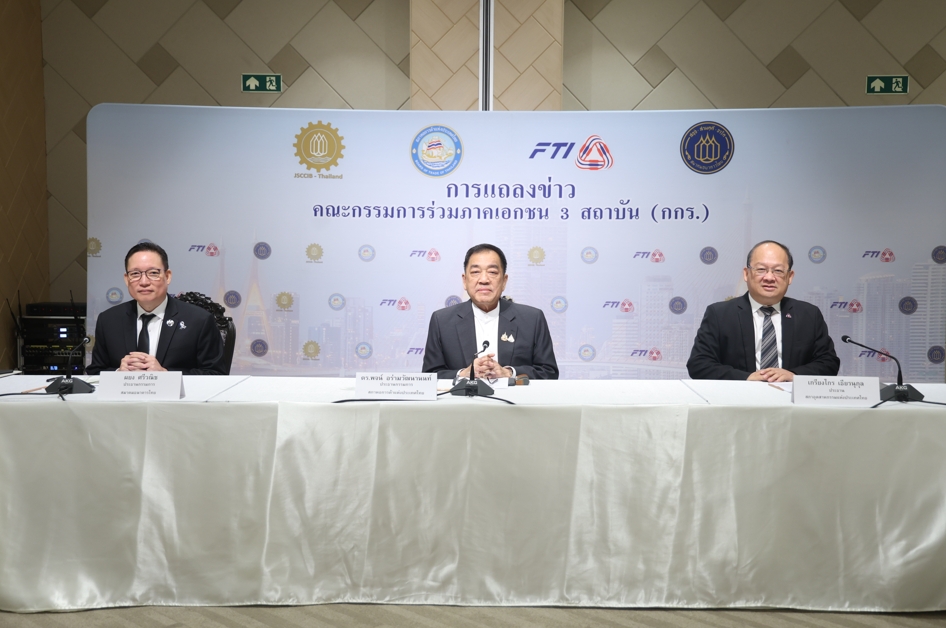 สำนักข่าวหุ้นอินไซด์ (07 มกราคม 2569 )-----ดร.พจน์ อร่ามวัฒนานนท์ ประธานกรรมการหอการค้าไทยและสภาหอการค้าแห่งประเทศไทย เป็นประธานการแถลงข่าว คณะกรรมการร่วมภาคเอกชน 3 สถาบัน (กกร.) โดยมี นายเกรียงไกร เธียรนุกุล ประธานสภาอุตสาหกรรมแห่งประเทศไทย (ส.อ.ท.) และนายผยง ศรีวณิช ประธานสมาคมธนาคารไทย ร่วมในการแถลงข่าว ณ ศูนย์การประชุมแห่งชาติสิริกิติ์
